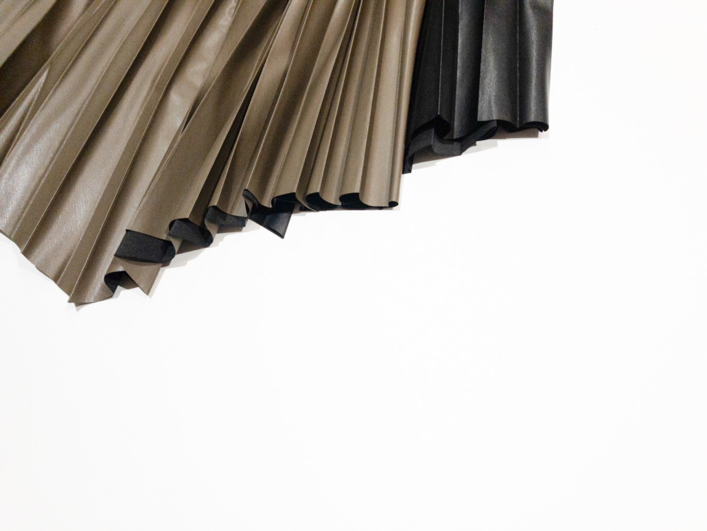 上品な光沢が足元に秋を誘うプリーツスカート。