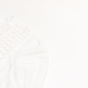 異素材ミックスが目を惹く、レイヤード風トップス。