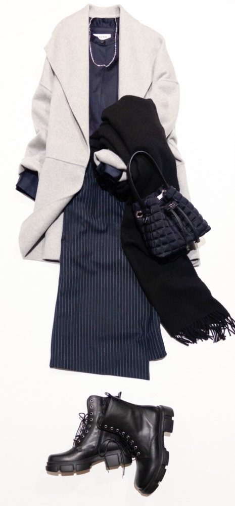 ざっくりとした風合いのグレーが、マニッシュながらも柔らかな印象のコート。