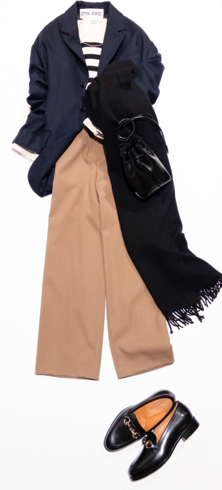 シンプルなパンツスタイルに羽織るだけで、洗練されたこなれ感が生まれます。