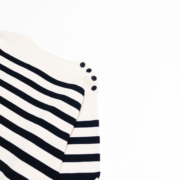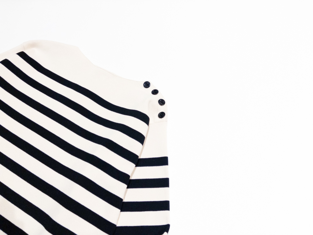 計算されたシルエットとボーダーのピッチが、洗練されたカジュアルさを演出。