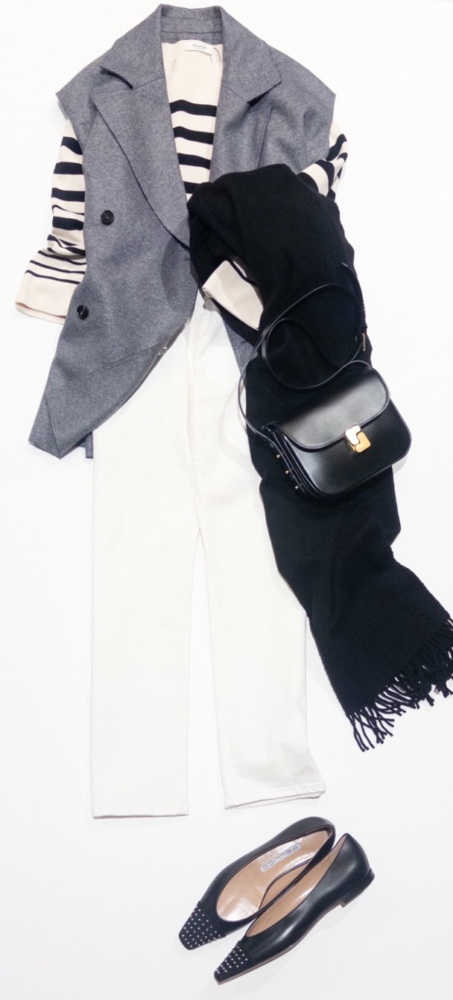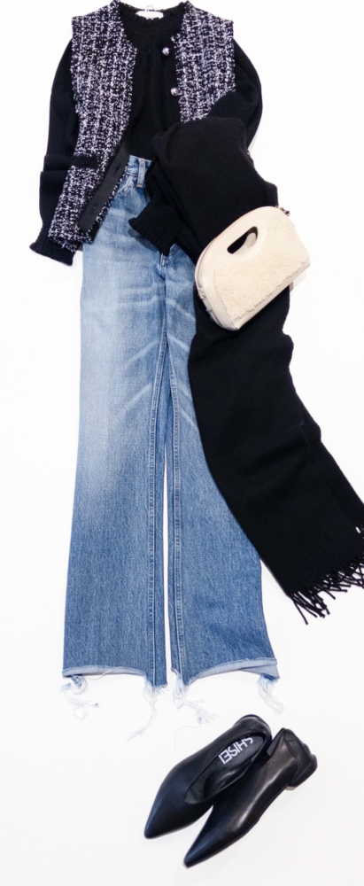 いつものデニムスタイルに重ねるだけで、装いをぐっとクラスアップ。