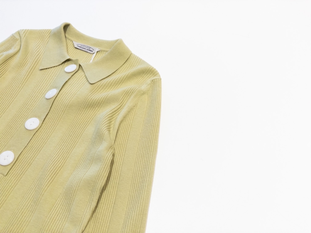 ヘルシーなピスタチオカラーが春の訪れを感じさせる、リブニットカーディガン。