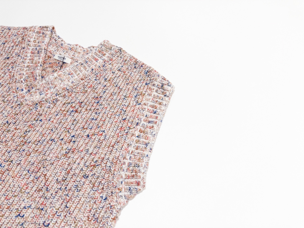 多色の糸が織りなす絶妙なニュアンスが、大人の遊び心をくすぐる一着。