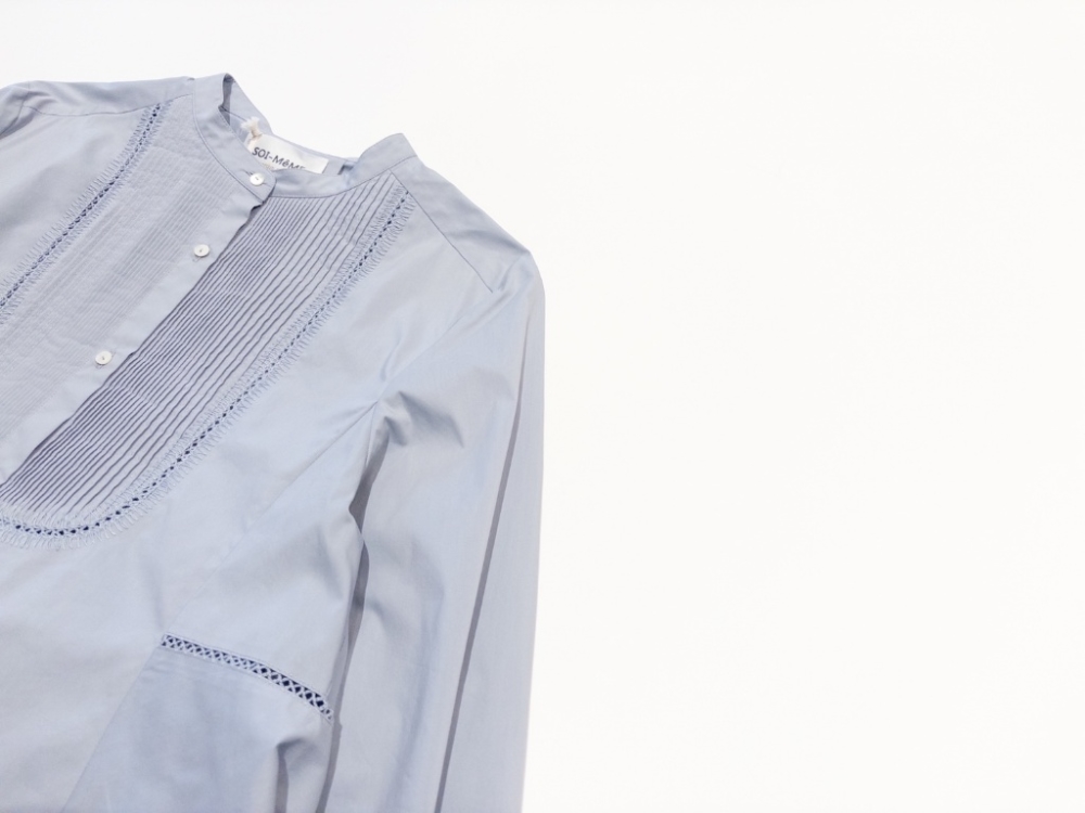 フロントの繊細なピンタックとレース使いが、凛とした美しさを放つシャツ。