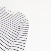 透け感のある柔らかな風合いが、ボーダー柄に女性らしいニュアンスをプラス。