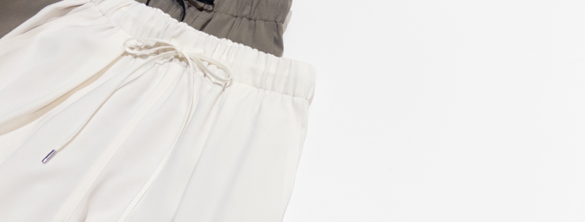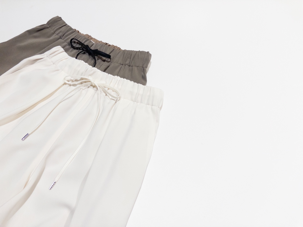 とろみのある上品な落ち感が、女性らしい柔らかなニュアンスを描くイージーパンツ。